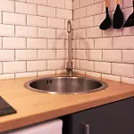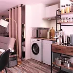 ベッドルーム1室のStudio Calme & Style En Hyper Centreには設備の整った台所が備わります。 宿泊施設からわずか150メートルほどのBourratバス停からバスに乗って、ペルピニャンの他の地域を探索することもできます。